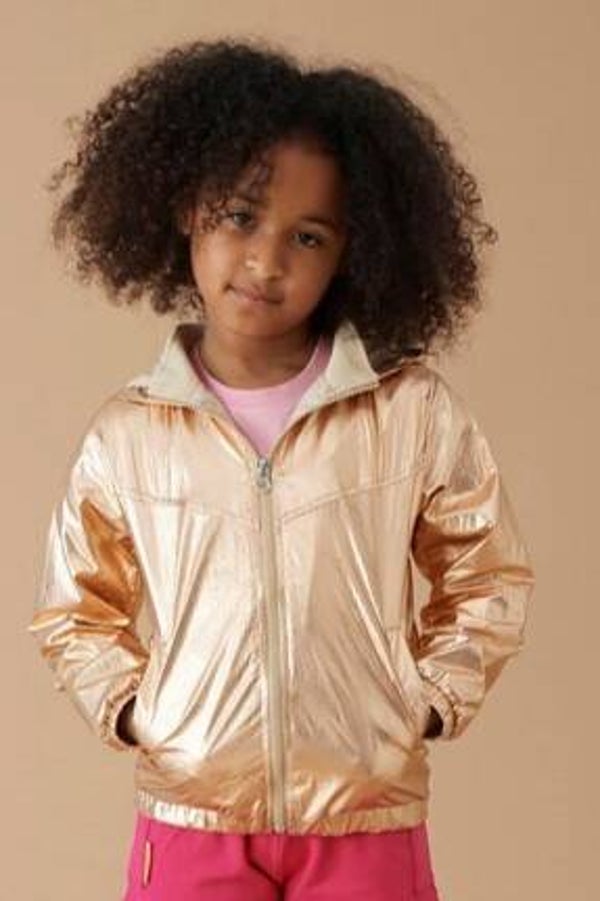 Stoere goudkleurige jas van het merk JUBEL. Deze shiny gouden jas uit het thema Ciao Bella heeft elastische boorden, stoere steekzakken en een capuchon. De sluiting van de jasje is voorzien van een handige rits.