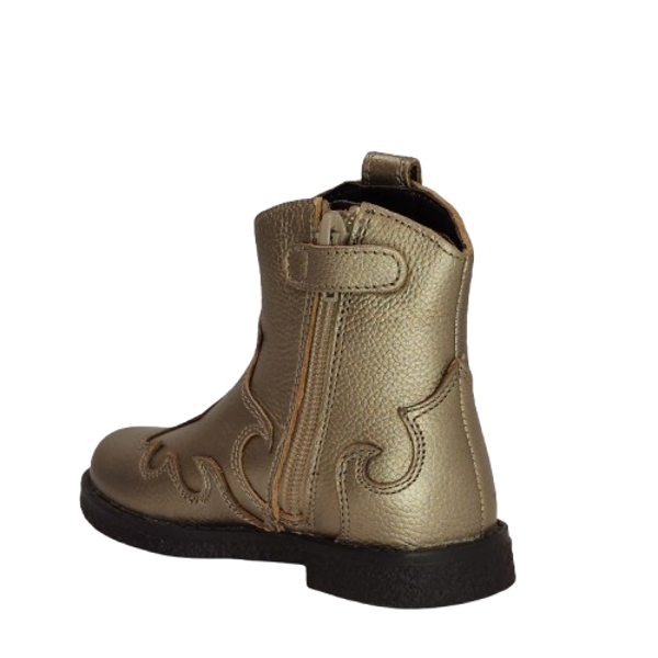 Western laarzen zijn niet meer weg te denken uit het straatbeeld. Met deze cowboylaars van VINGINO maak je iedere outfit compleet. De goud gekleurde metallic laars, met supergave details, is voorzien van een handige rits aan de binnenzijde. Deze westernboots zijn gemaakt van hoogwaardig nappa leer, een lederen binnenvoering en een uitneembaar lederen voetbed.