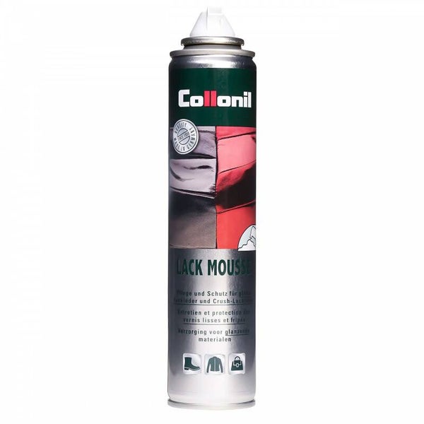 Deze mousse van COLLONIL behoudt de elasticiteit en glans van het lakleer. De toevoeging van elasticiteit verkleint de kans op scheurtjes van het lak. Bovendien heeft de mousse een antistatische werking waardoor het lak minder vuil aantrekt. De mousse is eenvoudig aan te brengen op de schoenen en hoeft alleen ingewreven te worden.