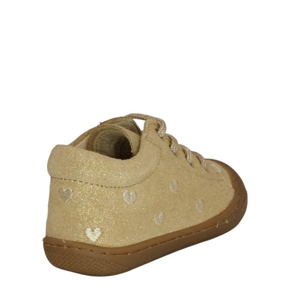 De NATURINO BABYSCHOEN COCOON is zeer geschikt voor de kindjes die zichzelf gaan optrekken of beginnen met het zetten van de eerste stapjes. De babyschoen is extreem flexibel, heeft een antislip zool en een rubberen stootneus. Deze pre-walker is helemaal van leer, dat zorgt voor een goed ademend vermogen. De lederen binnenzool is uitneembaar en de rubberen stootneus is ideaal voor de nog kruipende kindjes. Kortom een zeer flexibel eerste loopschoentje voor de allereerste stapjes. Het schoentje is uitgevoerd in de kleur beige met een gouden glitter effect en geborduurde hartjes als schattig detail.