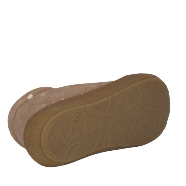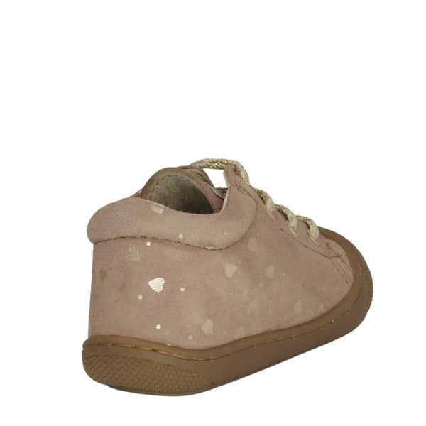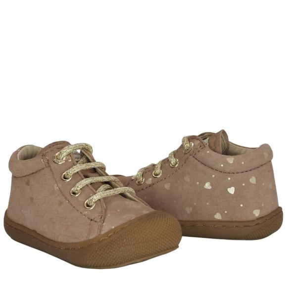 De NATURINO BABYSCHOEN COCOON is zeer geschikt voor de kindjes die zichzelf gaan optrekken of beginnen met het zetten van de eerste stapjes. De babyschoen is extreem flexibel, heeft een antislip zool en een rubberen stootneus. Deze pre-walker is helemaal van leer, dat zorgt voor een goed ademend vermogen. De lederen binnenzool is uitneembaar en de rubberen stootneus is ideaal voor de nog kruipende kindjes. Kortom een zeer flexibel eerste loopschoentje voor de allereerste stapjes. Het schoentje is uitgevoerd in de kleur oud roze suède met goudkleurige hartjes als schattig detail.