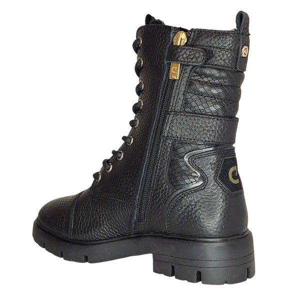 Een aanwinst aan je schoenencollectie is deze veterboot van het merk CRUYFF. Deze nappa lederen schoen is uitgevoerd in de kleur zwart. Opvallend zijn de goudkleurige details all-over de schoen. Deze hippe boots zijn eindeloos te combineren onder een jurk, rok, broek of een stoere jeans. De binnenzool van deze schoen is uitneembaar.