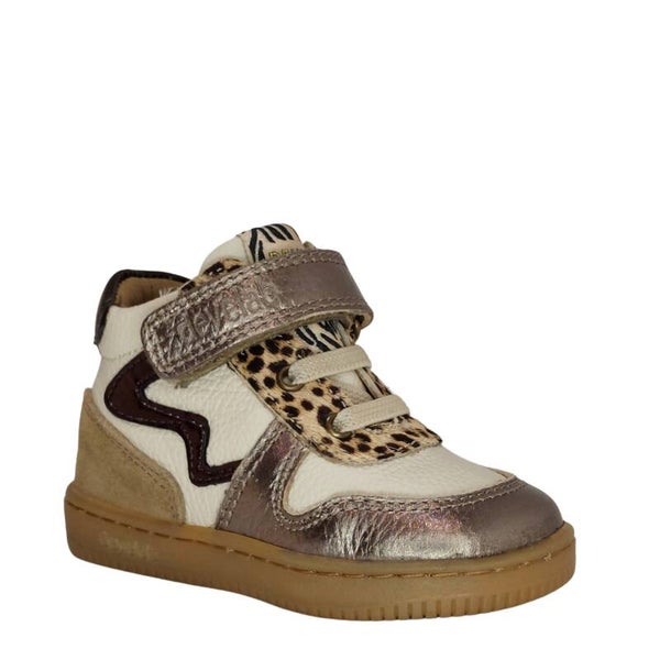 Een stoer model uit de baby sneaker collectie van DEVELAB. Deze babysneaker is gemaakt van 100% leer en heeft een flexibele rubberen loopzool die met het voetje meebuigt. De verstevigde hiel en het uitneembare voetbed bieden steun en kwaliteit, waardoor jouw kleintje zowel staand als stappend een goede houding heeft. Door al deze eigenschappen hoeft jouw kleintje helemaal niet te wennen aan het dragen van schoentjes, staan ze veel stabieler en stappen ze zo weg. Dit model is uitgevoerd in een trendy combinatie van kleuren en materialen en is perfect te matchen met iedere outfit. De sneakers gaan makkelijk aan en uit door de combinatie van elastiek- en klittenbandsluiting. Kortom: een echte musthave!