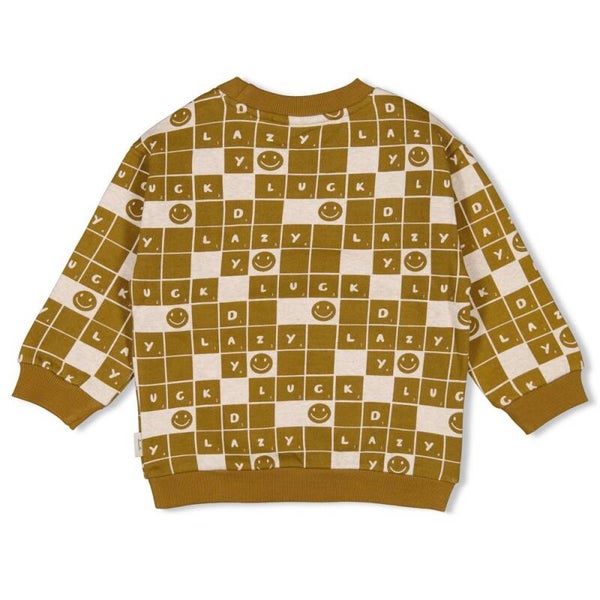 Sweater met lange mouw van het merk STURDY. De olijf kleurige sweater is voorzien van een stoere all-over print uit het thema Couch Club.
