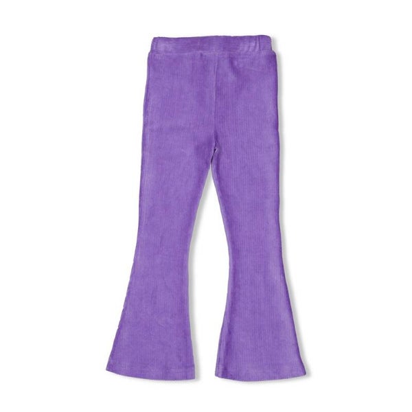 Flared broek in de kleur lavendel van het merk JUBEL. Deze flare broek met wijde pijpjes uit het thema Wild Soul is gemaakt van een zacht velourse ribstof. Daarnaast heeft de broek een comfortabele elastische taille band waardoor deze altijd mooi past.
