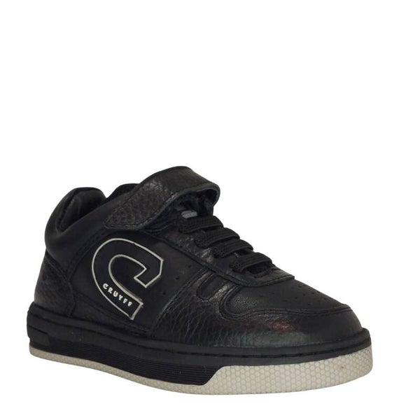 Ontdek de CRUYFF Chido JR sneaker voor kids! Met deze lederen sneaker aan je voeten is jouw outfit helemaal up-to-date!! Een onmisbare sneaker die past bij elke kledingstijl. Deze zwarte sneaker met gestroomlijnde vormgeving, perforaties en een grijs accent zorgt voor een sportieve, stijlvolle en luxueuze uitstraling. Het voetbed is uitneembaar en zorgt voor extra demping. Dit model is ook nog eens uitgevoerd met een elastische vetersluiting en klittenband, waardoor je de sneaker snel en makkelijk aan en uit doet.