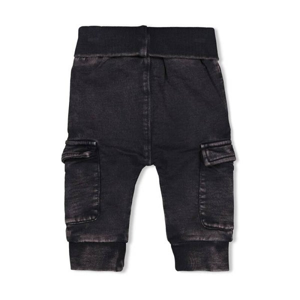 Baby cargo broek van het merk FEETJE. Het antraciet kleurig cargo broekje heeft een comfortabele elastische taille band, waardoor het broekje altijd goed past.