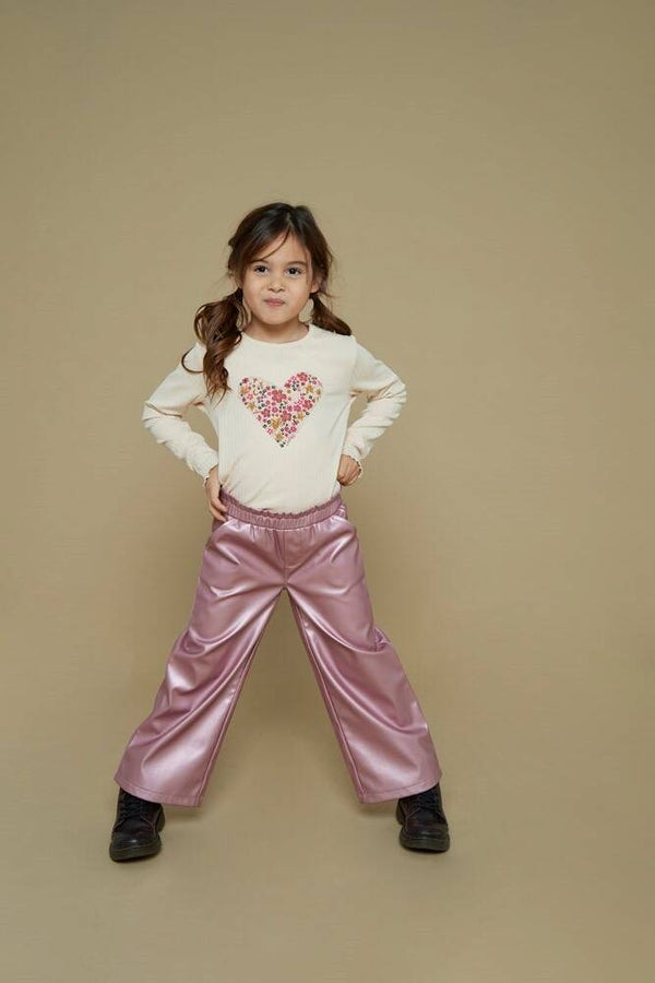 Shiny culotte van het merk JUBEL. Deze glazende metallic roze wijde broek, uit het thema Shine Bright, is gemaakt van imitatieleer. Daarnaast heeft de broek een comfortabele elastische taille band waardoor deze altijd mooi past.