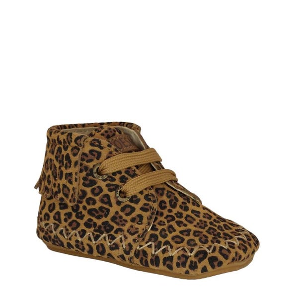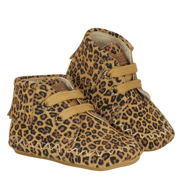 Veiligheid, vertrouwen en comfort komen samen in deze prachtige schoentjes. Als ouder wil je niets minder dan het allerbeste voor je kleintje, deze cognac bruine suède schoentjes met vrolijke leopardprint en franjes combineren comfort, veiligheid en stijl. Zo geef je je kindje niet alleen een stevige basis, maar ook een liefdevolle en zorgeloze start.